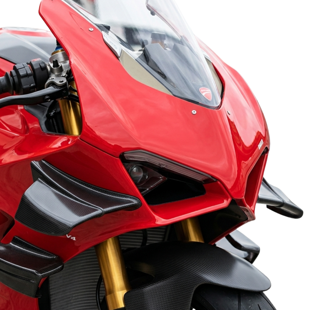 We offer a complete V4RS race fairing kit that is 10% wider than the V4R fairing kit. It will fit all Panigale V4, V4S, V4R and Speciale models. This design incorporates features from the WSBK and BSB Factory engineering to give you a competitive advantage with improved aerodynamics and weight savings –